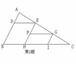 2.在ΔABC中,DE∥FG∥BC,GI∥EF∥AB,若ΔADE, ΔEFG, ΔGIC的面积分别为20cm2,45cm2,80cm2,则ΔABC的面积为_________.