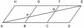 21、如图,用三个全等的菱形ABGH、BCFG、CDEF拼成平行四边形ADEH,连接AE与BG、CF分别交于P、Q,若AB=6,求线段BP的长。(6分)