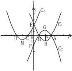 与x轴相交于A、B、C、D四点;与y相交于E、F两点;H、G、M分别为抛物线
