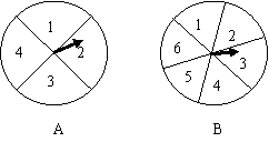 (2) 转盘停止后,指针各指向一个数字(如果指针恰好指在分割线上,那么重转一次,直到指针指向一个数字为止),用所指的两个数字作乘积,如果所得的积是偶数,那么甲胜;如果所得的积是奇数,那么乙胜。