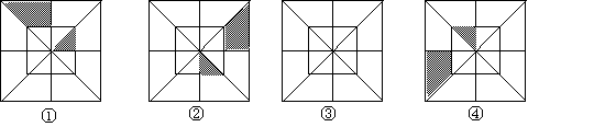9. 分析图①,②,④中阴影部分的分布规律,按此规律在图③中画出其中的阴影部分.