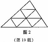 19、如图,将一个三角形的三边依次都分成2、3、4……等分,并将分点按图1、图2、图3那样连起来,这样,每个图中所得到的小三角形都会全等.按此方法,当三边都分成10等分时,所得到的全等小三角形的个数是( ).