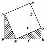 28、(本题9分)如图,已知:四边形ABCD、CEGF分别是边长为a、b(a>b)的正方形,B、C、E三点在同一条直线上,点M在边BC上,且BM=b,连接AM、MG,并将△ABM绕点A逆时针方向旋转到△ADN的位置,△MEG绕点G顺时针方向旋转后恰好与△NFG重合.