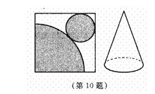 10、如图,在正方形铁皮上剪下一个圆和扇形(圆与扇形外切,且与正方形的边相切),使之恰好围成如图所示的一个圆锥模型,设圆半径为