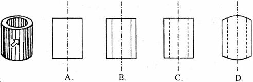 14、下面是空心圆柱体在指定方向上的视图,正确的是( )