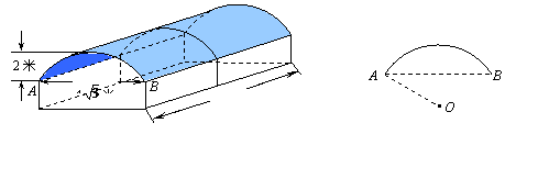 22.如图:某学校存放自行车的车棚的示意图(尺寸如图所示),车棚顶部是圆柱侧面的一部分,其展开图是矩形.右边是车棚顶部截面的示意图,所在圆的圆心为O.车棚顶部是用一种帆布覆盖的,求覆盖棚顶的帆布的面积(不考虑接缝等因素,计算结果保留