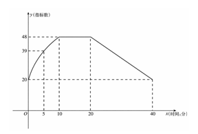 11.通过实验研究,专家们发现:初中学生听课的注意力指标数是随着老师讲课时间的变化而变化的,讲课开始时,学生的兴趣激增,中间有一段时间,学生的兴趣保持平稳的状态,随后开始分散. 学生注意力指标数y随时间x(分钟)变化的函数图象如图所示(y越大表示学生注意力越集中). 当