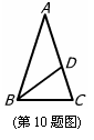 10.如图,△ABC中,AB=AC,点D在AC边上,且BD=BC=AD,则∠A的度数为
