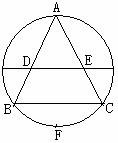 4、如图,把正△ABC的外接圆对折,使点A落在弧BC的中点F上,若BC=5,则折痕在△ABC内的部分DE长为( )