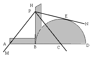 23、 三等分角仪--把材料制成如图所示的阴影部分的形状,使AB与半圆的半径CB、CD相等,HB垂直于AD,这便做成了“三等分角仪”.如果要把∠MPN三等分时,可将三等分角仪放在∠MPN上,适当调整它的位置,使HB通过角的顶点P,使A点落在角的PM边上,使角的另一边与半圆相切于E点,最后通过B、C两点分别作两条射线PB、PC,则∠MPB=∠BPC=∠CPN.请用推理的方法加以证明.