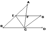 2、已知,如图⊿ABC中,∠ACB的平分线交AB于E,∠ACB的补角∠ACD的平分线为CG,