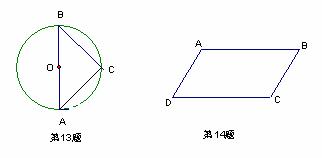 13.如右图,AB是⊙O的直径,C是⊙O上的一点,且BC=AC,∠ABC的度数是 .