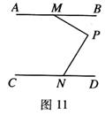 11.如图11,已知AB∥CD,∠AMP=150°,∠PND=60°.
