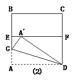 9、如图(10)的(1)中,ABCD是一张正方形纸片,E,F分别为AB,CD的中点,沿过点D的折痕将A角翻折,使得点A落在(2)中EF上,折痕交AE于点G,那么∠ADG= .