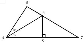 已知D是Rt△ABC斜边AC的中点,DE⊥AC交BC于E,且∠EAB∶∠BAC=2∶5,