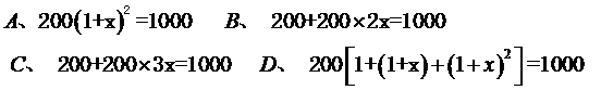 8、某超市一月份的营业额为200万元,第一季度的营业额共1000万元,如果平均每月增长率为x,则有题意列方程为( )