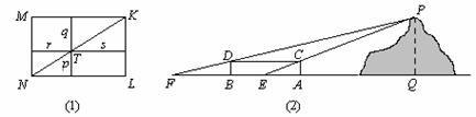 刘徽依据如图1,在矩形MNLK的对角线NK上的一点T分别画矩形两边的垂线,被两组对边截得的线段长分别为p,q,r,s,则