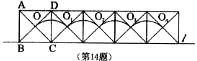 14.如图,将边长为a的正方形ABCD沿直线l按顺时针方向翻滚,当正方形翻滚一周时,正方形的中心O所经过的路径长为____.