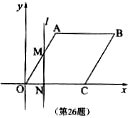 26.如图,在平面直角坐标系中,四边形OABC为菱形,点C的坐标为(4,0),∠AOC=60°,垂直于x轴的直线l从y轴出发,沿x轴正方向以每秒1个单位长度的速度运动,设直线l与菱形OABC的两边分别交于点M、N(点M在点N的上方).