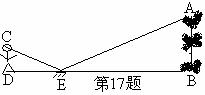 17.为了测量校园水平地面上一棵不可攀的树的高度,学校数学兴趣小组做了如下的探索:根据《科学》中光的反射定律,利用一面镜子和一根皮尺,设计如下图所示的测量方案:把一面很小的镜子放在离树底(B)8.4米的点E处,然后沿着直线BE后退到点D,这时恰好在镜子里看到树梢顶点A,再用皮尺量得DE=2.4米,观察者目高CD=1.6米,则树(AB)的高度约为________米(精确到0.1米)。