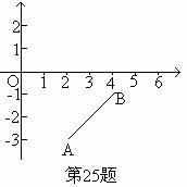25.如图,已知平面直角坐标系,A、B两点的坐标分别为A(2,-3),B(4,-1)。