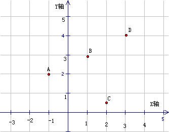 20、(10分)夏令营组织学员到某一景区游玩,老师交给同学一张画有直角坐标系和标有A、B、C、D四个景点位置的地图,指出:今天我们游玩的景点E是新开发的,地图上还没来得及标注,但已知这个景点E满足:①与景点A、C和景点B、D所在的两条直线等距离;②到B、C两景点等距离。请你在平面直角坐标系中,画出景点E的位置,并标明坐标(用整数表示)。