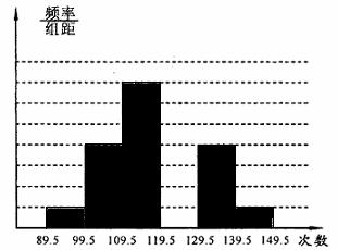 (6分)小明在一份题目为“了解本校初三毕业生体能情况”的调查报告中,通过对部分学生一分钟跳绳次数成绩的整理与计算,得出89.5-99.5组的频率为0.04,且绘出如下频率分布直方图(规定一分钟110次或110次以上为达标成绩):