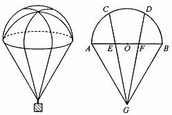 20.(7分)空投物资用的某种降落伞的轴截面如右图所示,△ABG是等边三角形,C、D是以AB为直径的半圆O的两个三等分点。CG、DG分别交AB于点E、F.试判断点E、F分别位于所在线段的什么位置?并证明你的结论.(证一种情况即可)