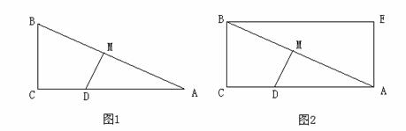 (2)如图2,以图1中的BC、CA为一组邻边的矩形ACBE中,动点D在矩形边上运动一周,能使△ADM是以∠AMD为顶点的等腰三角形共有多少个(直接写结果,不要求说明理由)?