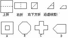 如下左图把一个正方形三次对折后沿虚线剪下,则所得图形大致是( )