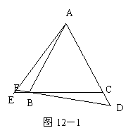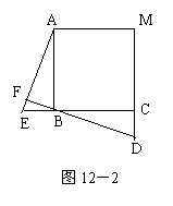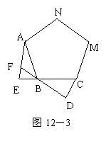 23.如图12-1、12-2、12-3中,点E、D分别是正△ABC、正四边形ABCM、正五边形ABCMN中以C点为顶点的一边延长线和另一边反向延长线上的点,且BE=CD,DB延长线交AE于F。
