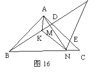 ② 点K在线段BD上,且四边形AKNC为等腰梯形(AC∥KN,如图16)。