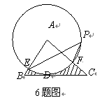 6.如图,在△ABC 中,BC =4,以点A为圆心、2为半径的⊙A与BC相切于点D,交AB于E,交 AC于F,点P是⊙A上的一点,且∠EPF=40°,则图中阴影部分的面积是( ).