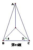 17.如图,湖中有建筑物AB,某人站在建筑物顶部A在岸上的投影处C,发现自己的影长与 身高相等.他沿BC方向走30 m到D处,测得顶部A的仰角为300.求建筑物AB的高.