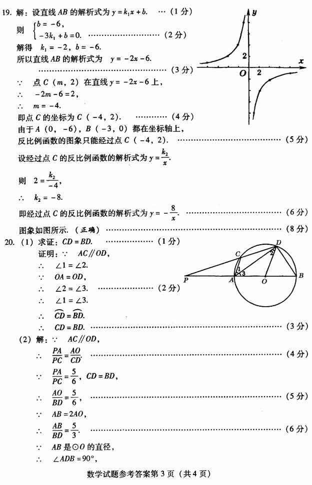 19.已知点A(0,-6),B(-3,0),C(m,2)三点在同一直线上,试求出图象经过其中一点的反比例函数的解析式并画出其图象.(要求标出必要的点,可不写画法.)