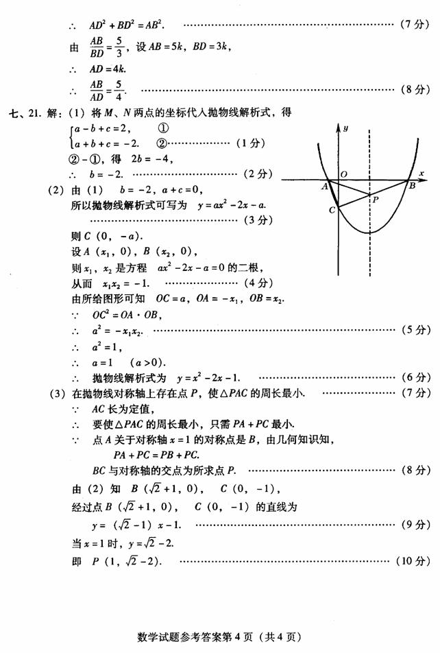 21.如图,经过点M(-1,2),N(1,-2)的抛物线