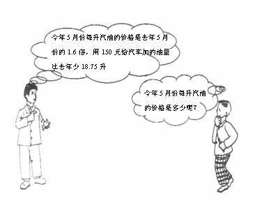 近年来,由于受国际石油市场的影响,汽油价格不断上涨,请你根据下面的信息,帮小明计算今年5月份每升汽油的价格.