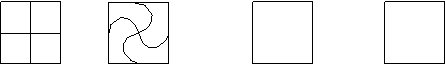 4. 如图9-13,有两个正方形的花坛,准备把每个花坛都分成形状相同的四块,种不同的花草.下面左边的两个图案是设计示例,请你在右面的两个正方形中设计两个不同的图案.