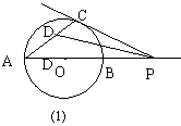 (1) 当点P在AB延长线上,如图9-16(1)时,连结AC,作∠APC的平分线,交AC于D,请你测量∠CDP的度数.