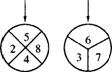 如图,两个标有数字的轮子可以分别绕轮子的中心旋转,旋转停止时,每个轮子上方的箭头各指着轮子上的一个数字,若左图轮子上方的箭头指着的数字为a,右图轮子上方的箭头指着的数字为b,数对(a,b)所有可能的个数为n,其中a+b恰为偶数的不同数对的参数为m,则m/n等于 ( )