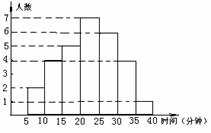 17. 一个研究性学习小组对九年级学生某双休日在家参加家务劳动所用的大致时间(以整数计)作了抽样调查, 如右统计图所示. 结合图中提供的信息, 可以得到: 这个小组所抽取样本的容量是 ______ ; 这个双休日参加家务劳动的大致时间不超过20分钟的人数占被调查学生人数的百分之 ______.