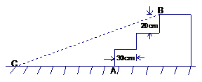 如图,广州某公园入口处原有三阶台阶,每级台阶高为20cm,深为30cm.为方便残疾人士,拟将台阶改为斜坡,设台阶的起点为A,斜坡的起始点为C,现将斜坡的坡角∠BCA设计为12°,求AC的长度。 (精确到1 cm)