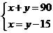 (04年南山5)如图3,AB⊥BC,∠ABD的度数比∠DBC的度数的两倍少15°,设∠ABD和∠DBC的度数分别为x、y,那么下面可以求出这两个角的度数的方程组是