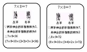 到“五五二十五”和我国的“小九九”是一样的,后面的就改用手