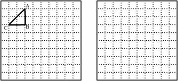 (1) 在图(1)中画出与△ABC相似的格点△A1B1C1和△A2B2C2, 且△A1B1C1与△ABC的相似比是2, △A2B2C2与△ABC的相似比是
