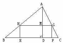 36、(2005年四省实验区)如图,要在底边BC=160cm,高AD=120cm,的△ABC铁皮余料上截取一个矩形EFGH,使点H在AB上,点G在AC上,点E、F在BC上,AD交HG于点M,此时