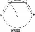 8、(2005广东茂名课该实验区)如图,梯形ABCD内接于◎○,AB//CD,AB为直径,DO平分∠ADC,则∠DAO的度数是(D)