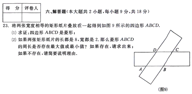 27.在平面直角坐标系中,矩形ABCD的边AB=2,AD=1,且AB、AD分别在x轴、y轴的正半轴上,点A与坐标原点重合,将矩形折叠,使点A落在边DC上,设A’是点A落在边DC上的对应点。