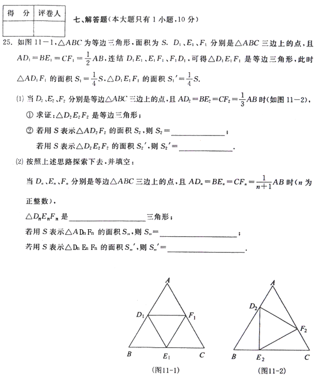 7、如果∠α是等边三角形的一个内角,那么cosα的值等于 ( )