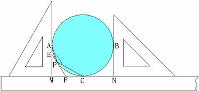 上的一个动点.①过点P作圆形工件的切线EF,分别与AM、MC交于E、F两点.试比较△MEF的周长与圆形工件直径的长短.要求写出详细的比较过程;②连结PA、PC,试求∠APC的大小.